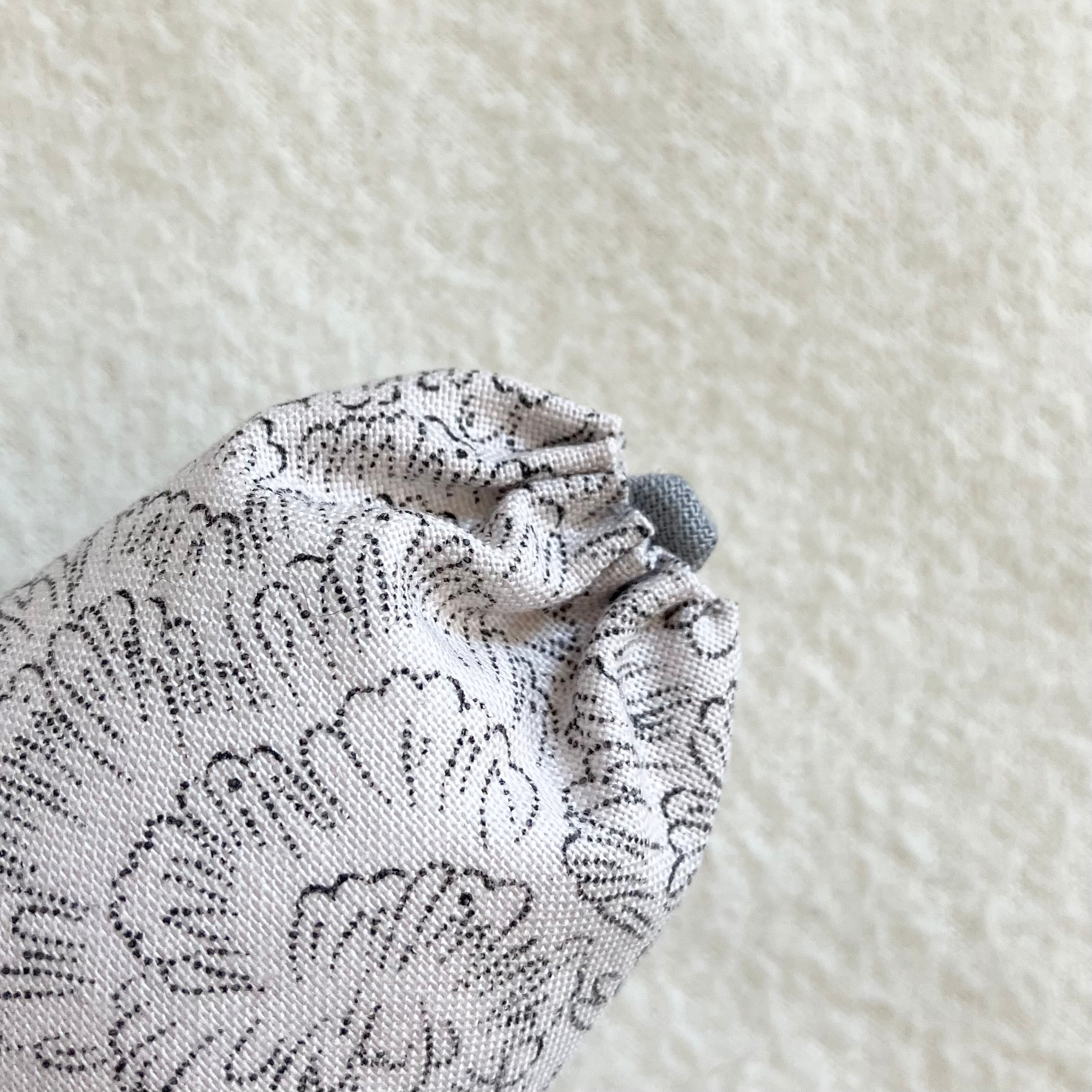ほんの少しピンクがかったグレーに繊細な線で描かれたお花模様のコットンです
