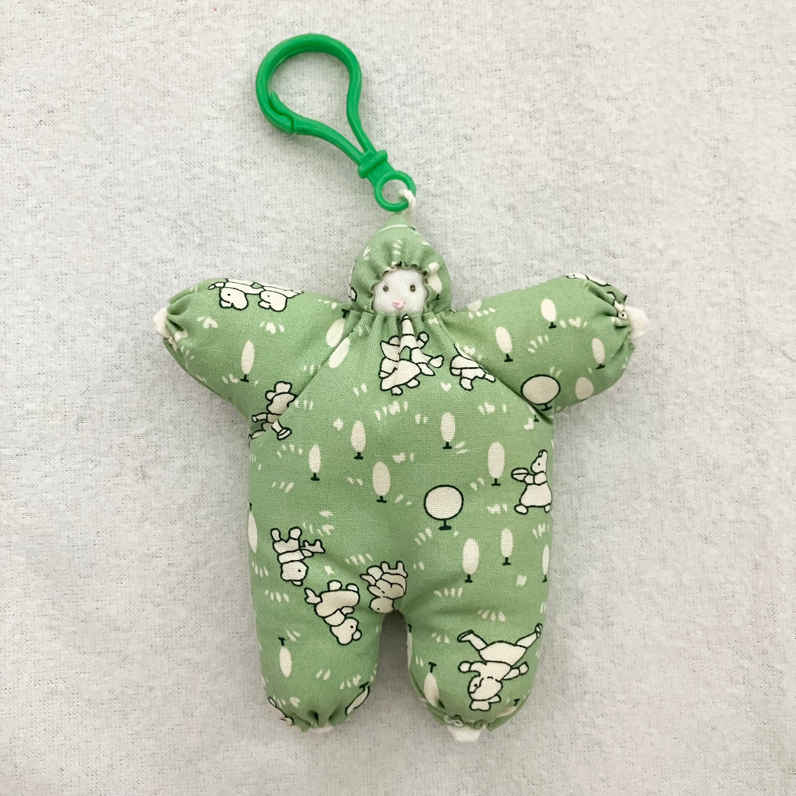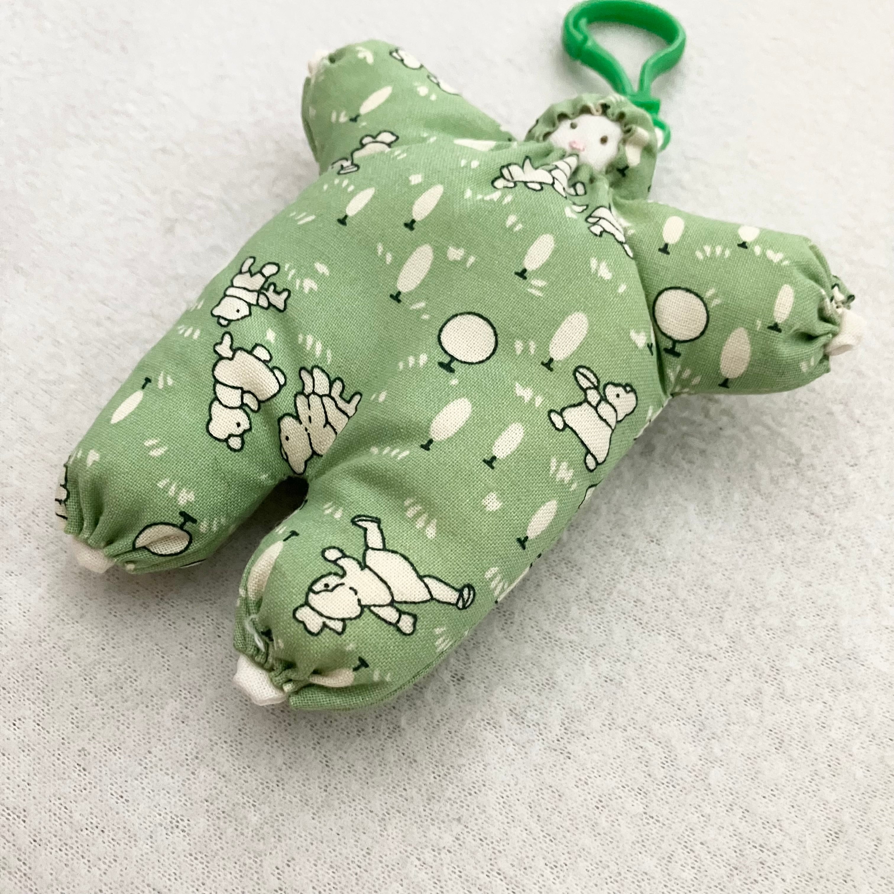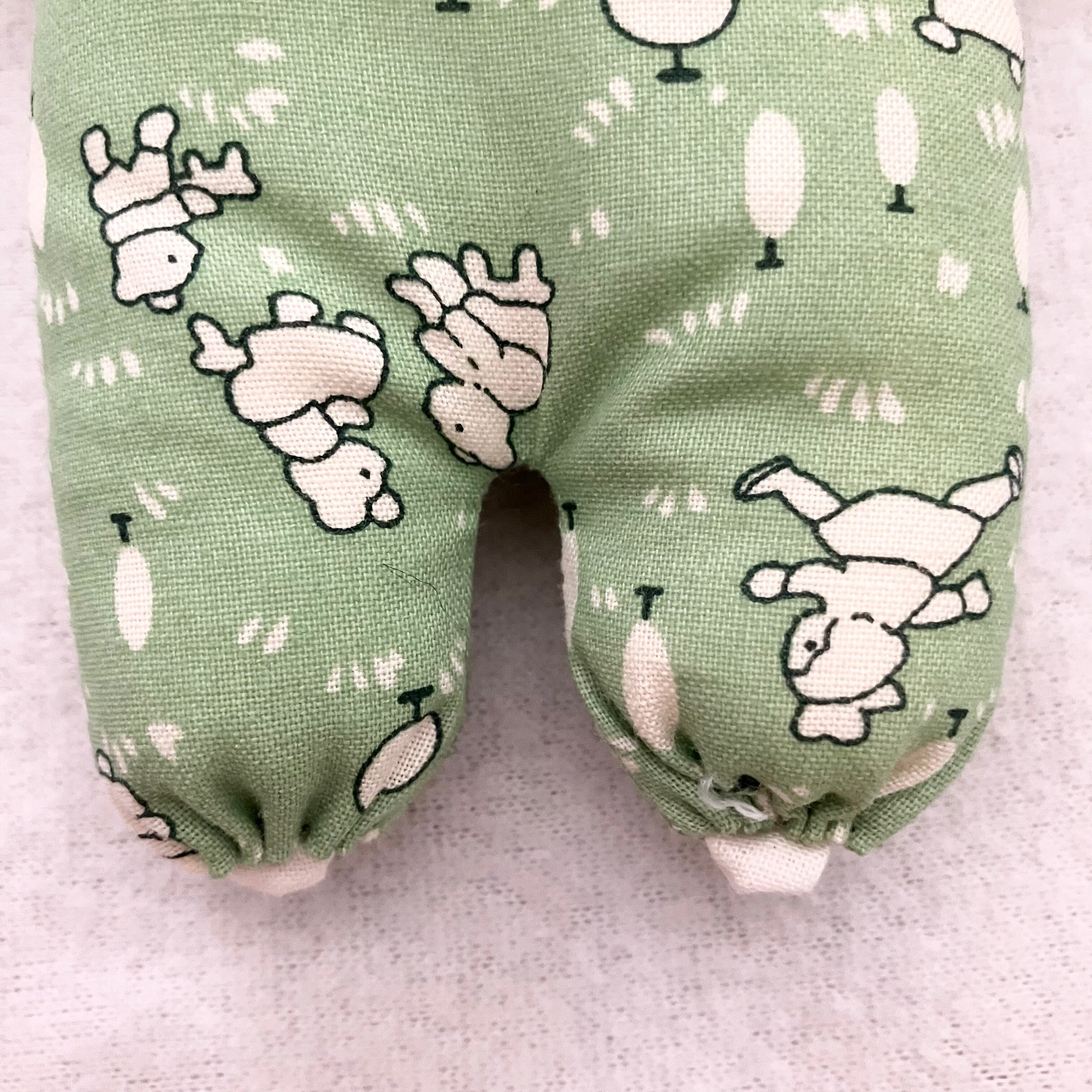 淡く渋めのグリーンに、レトロタッチなクマちゃん親子模様です♪