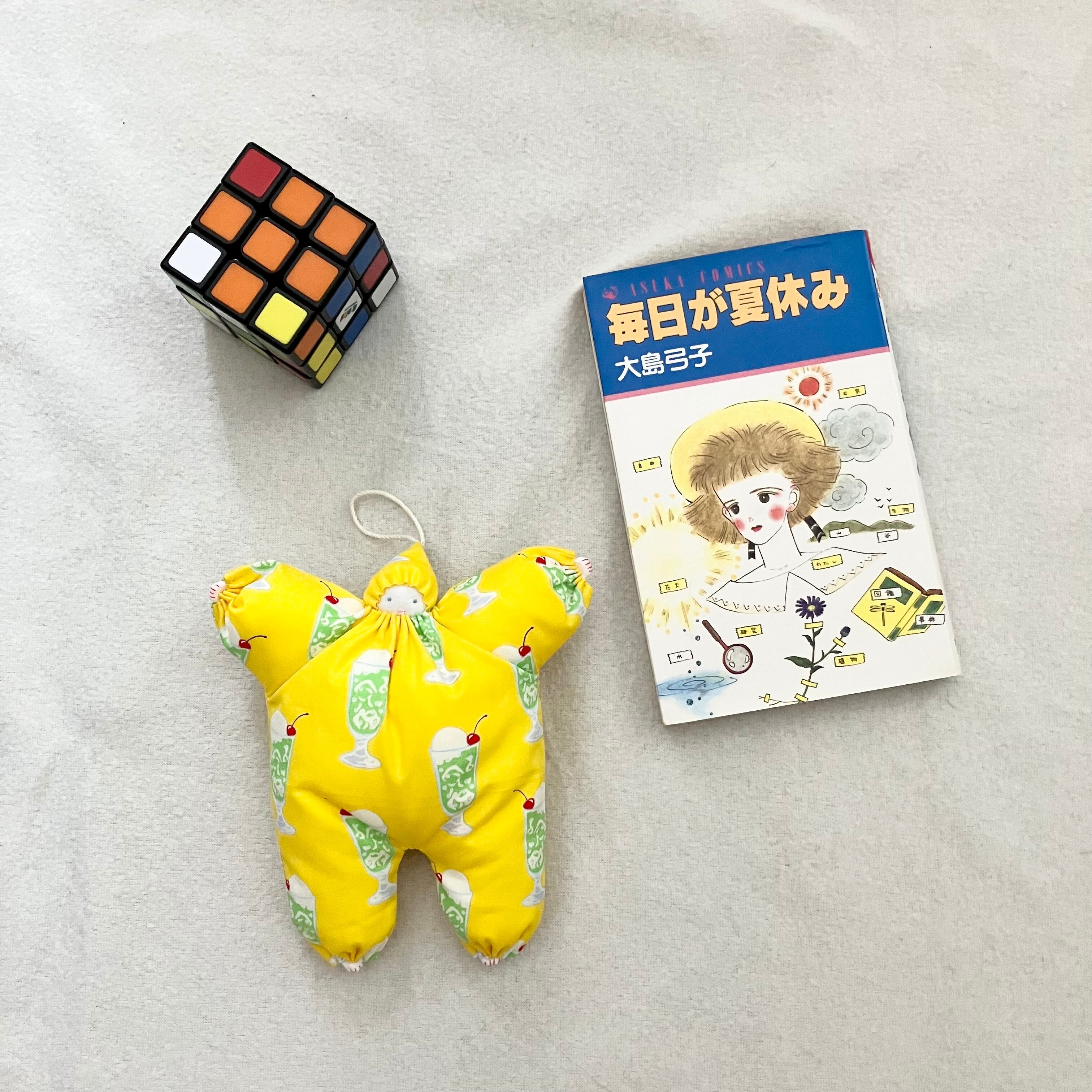 鮮やかで元気なイエローに、かわいいクリームソーダ模様のコットン生地です。