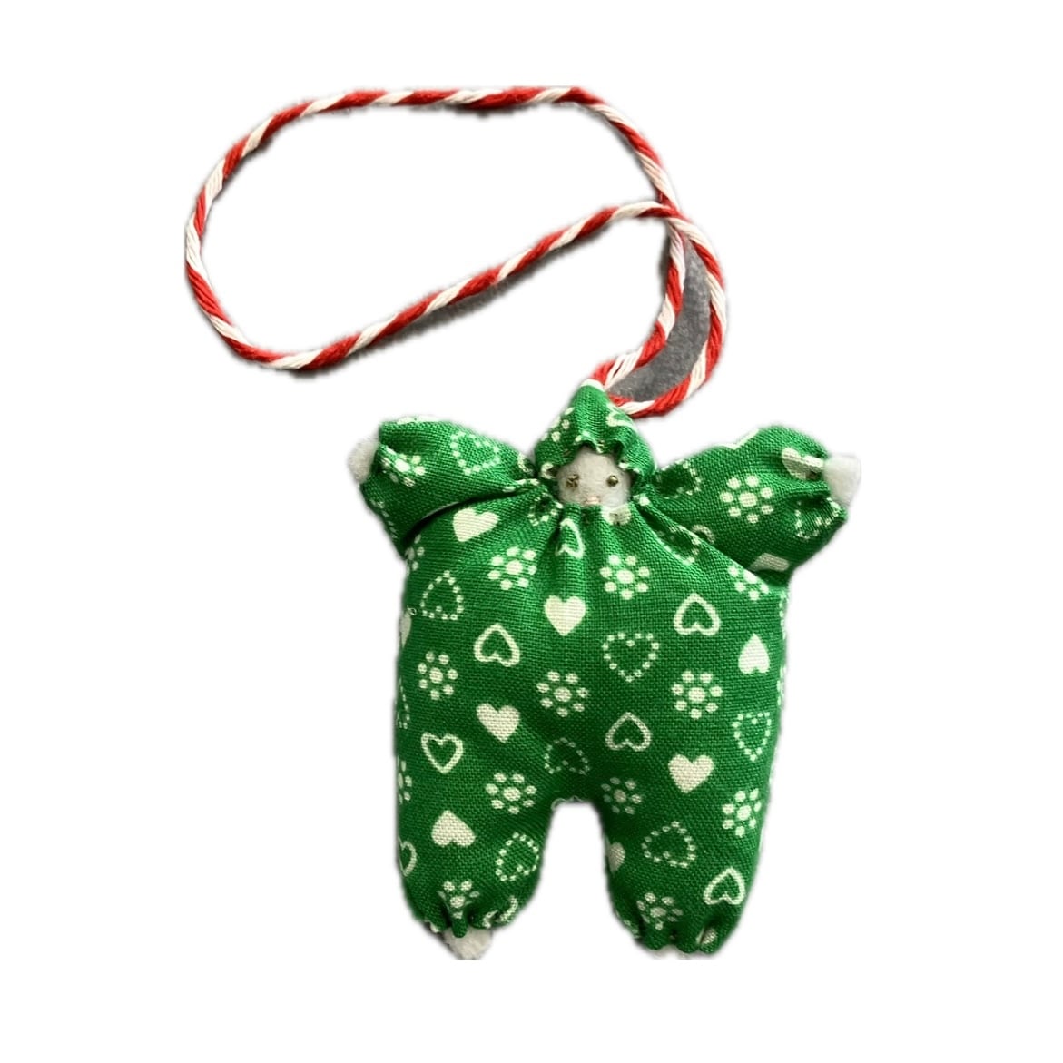 クリスマスグリーンにレトロタッチなハートやお花の模様です◎