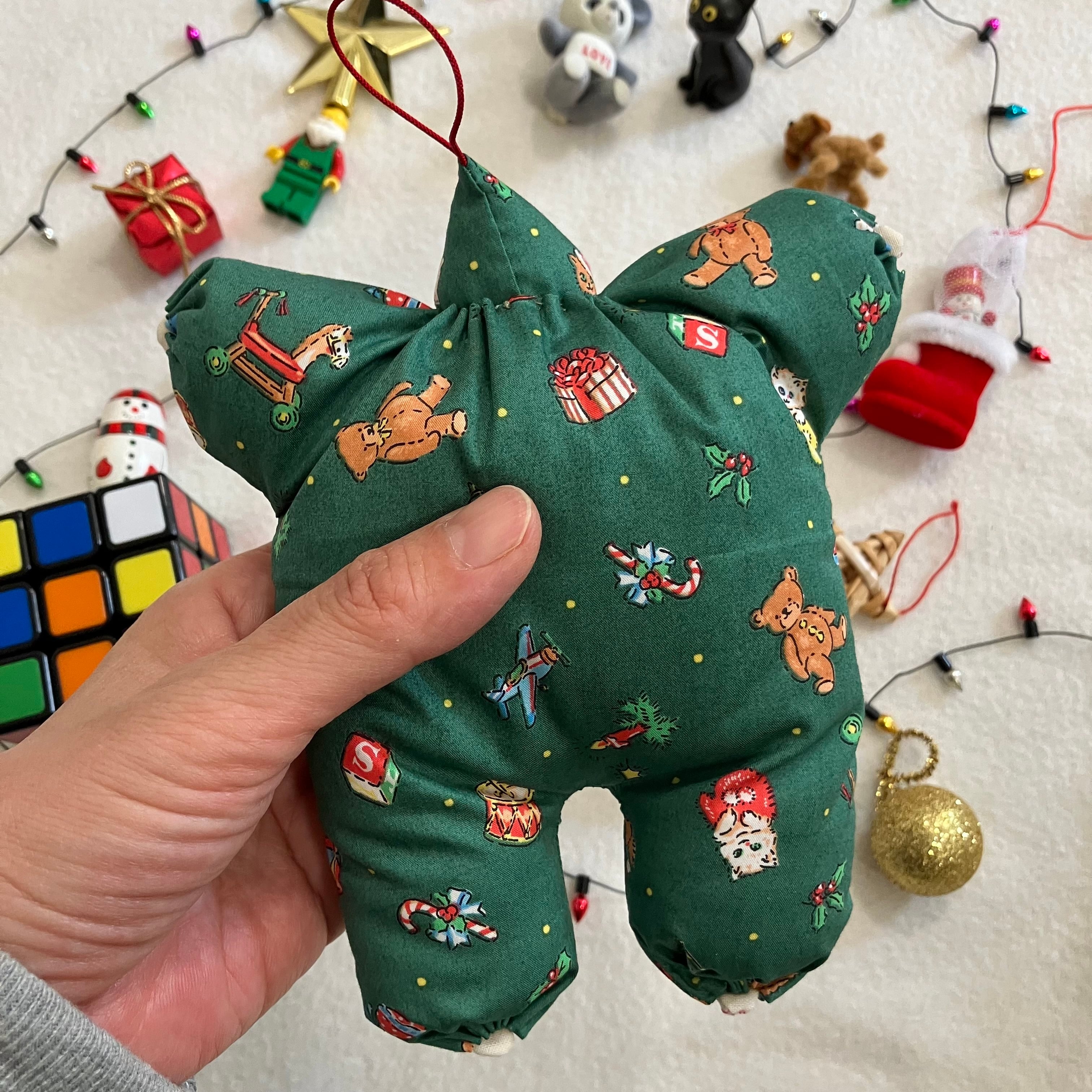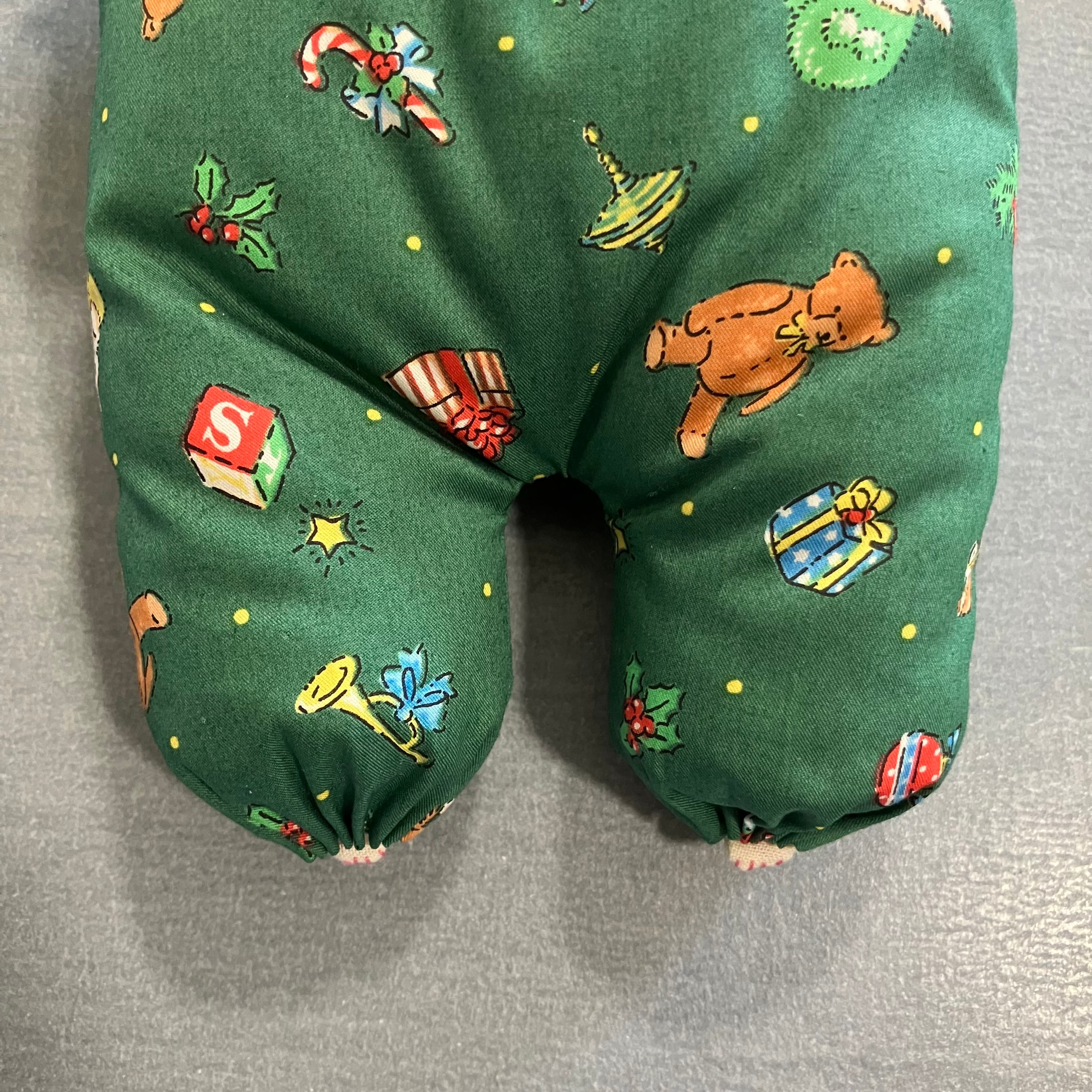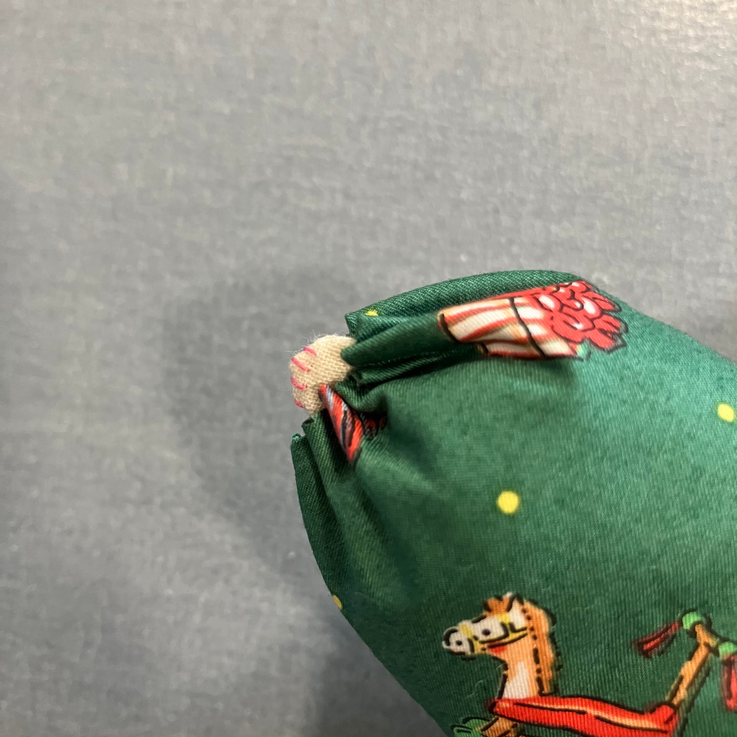 落ち着いたグリーンに、クリスマスにまつわる可愛い色々模様のコットン生地です。