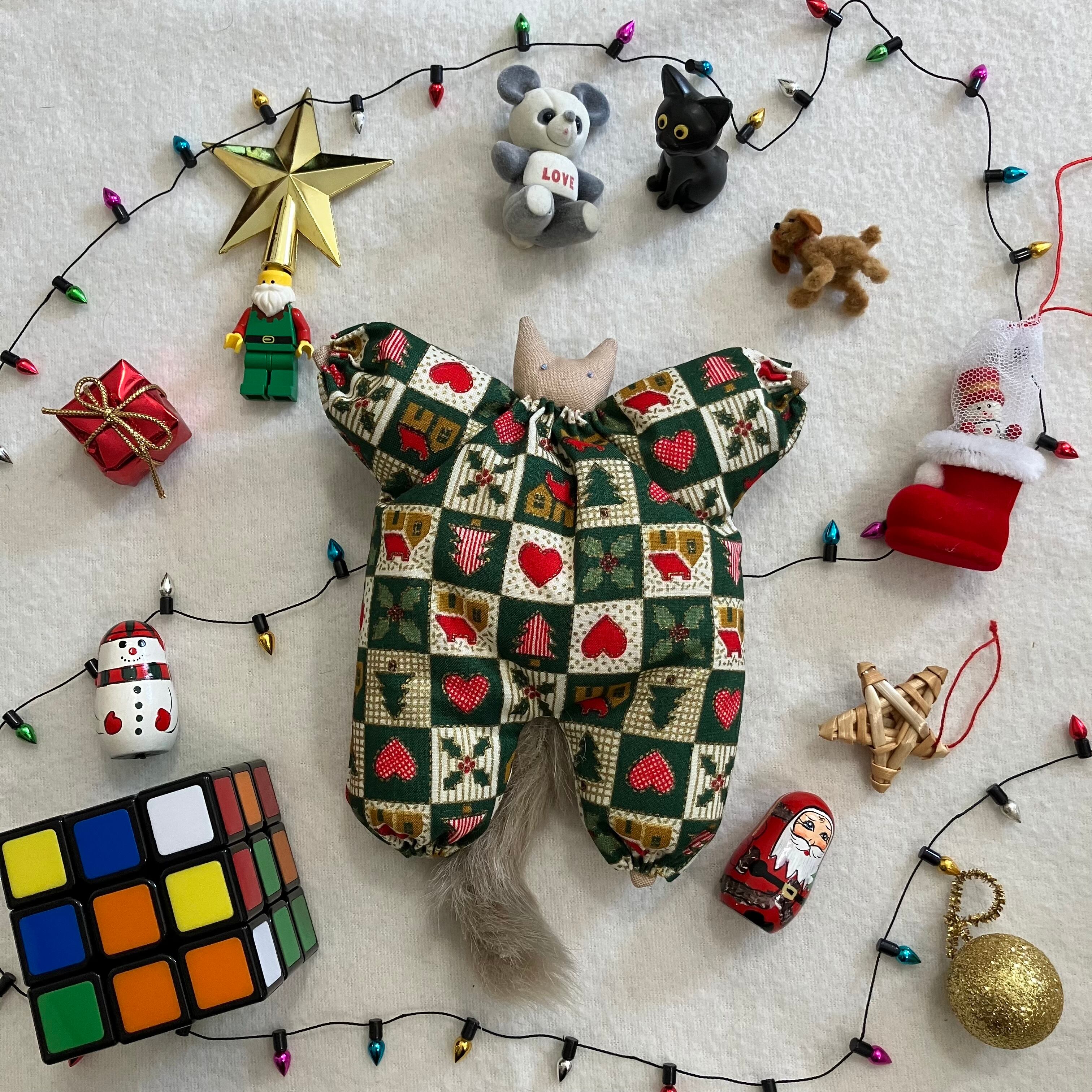 レトロ雰囲気のクリスマスパッチワーク模様のコットンです