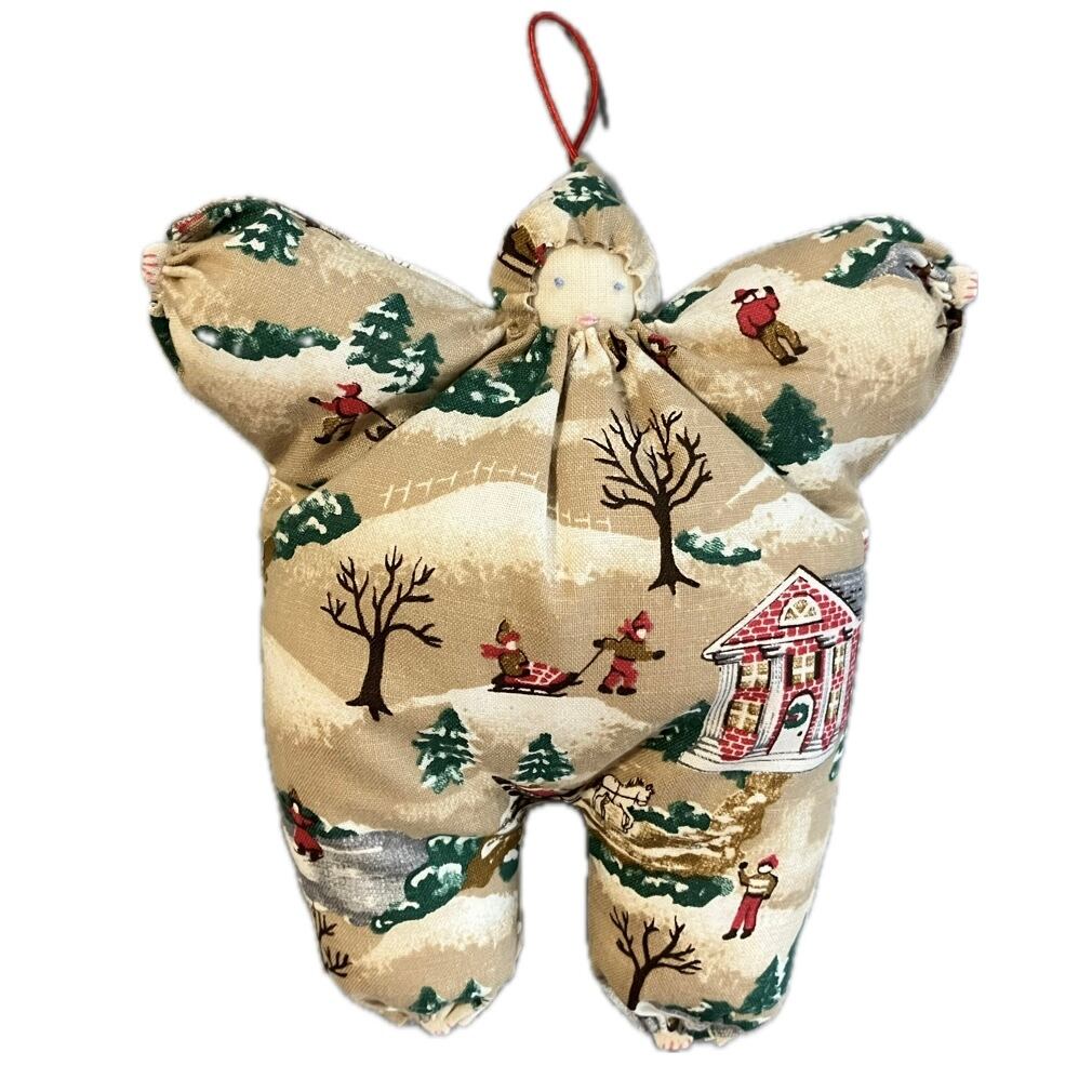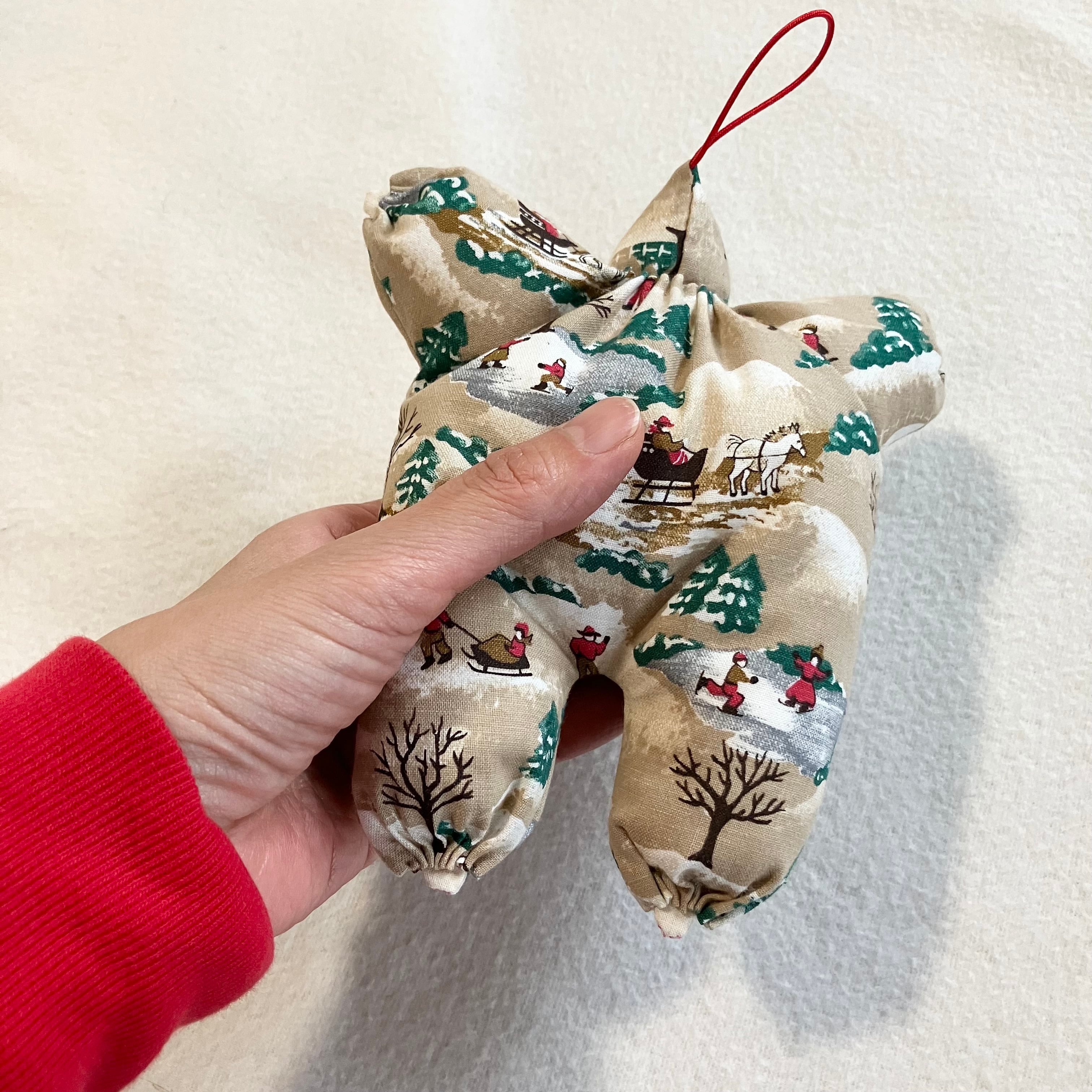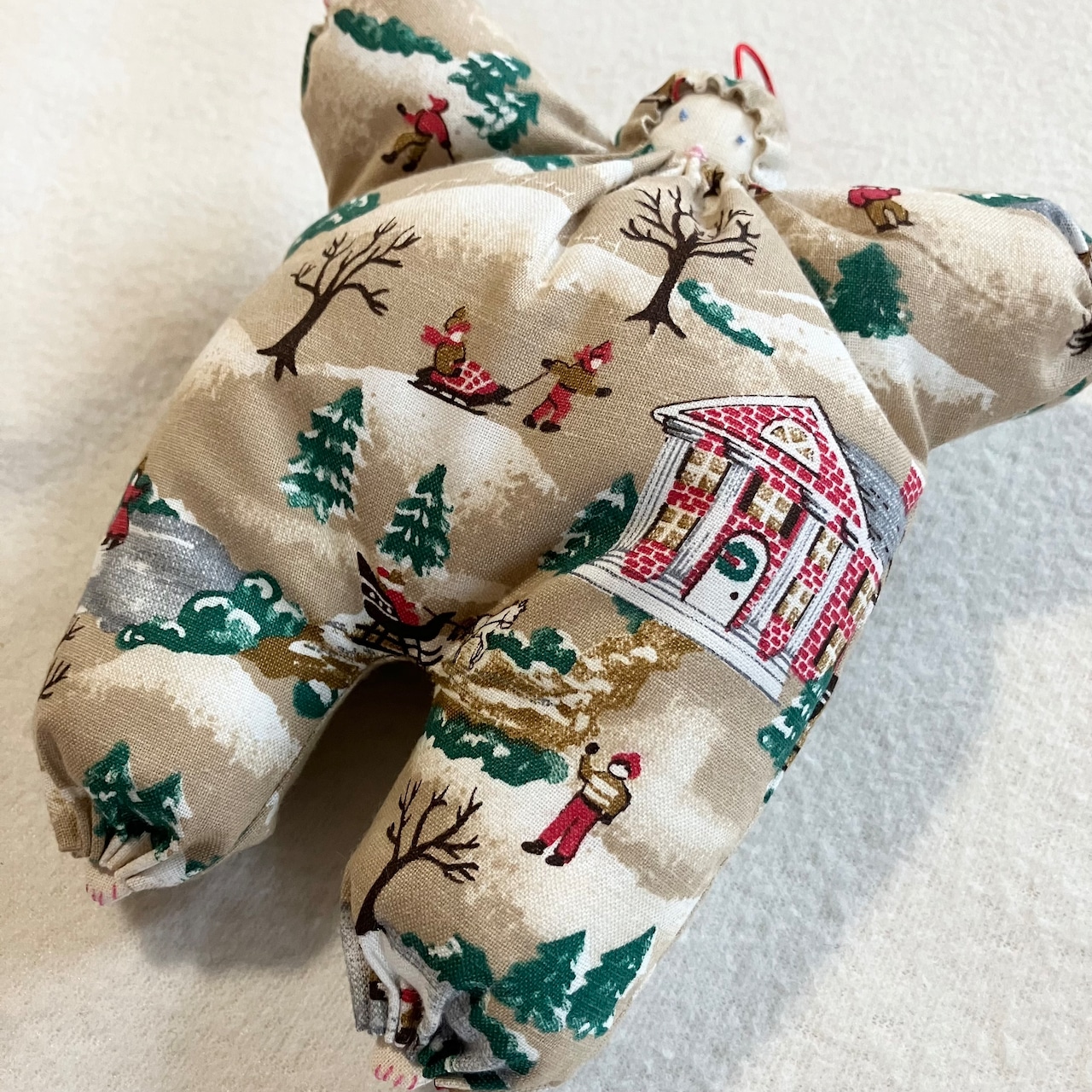 雪が降ったあたたかな村の景色模様のコットン生地です。