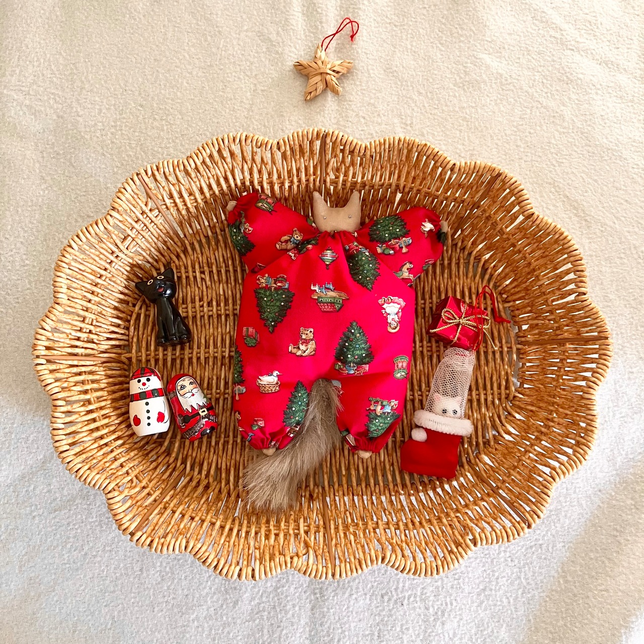 クリスマスレッドにクリスマスの素敵ないろいろ模様のコットンです