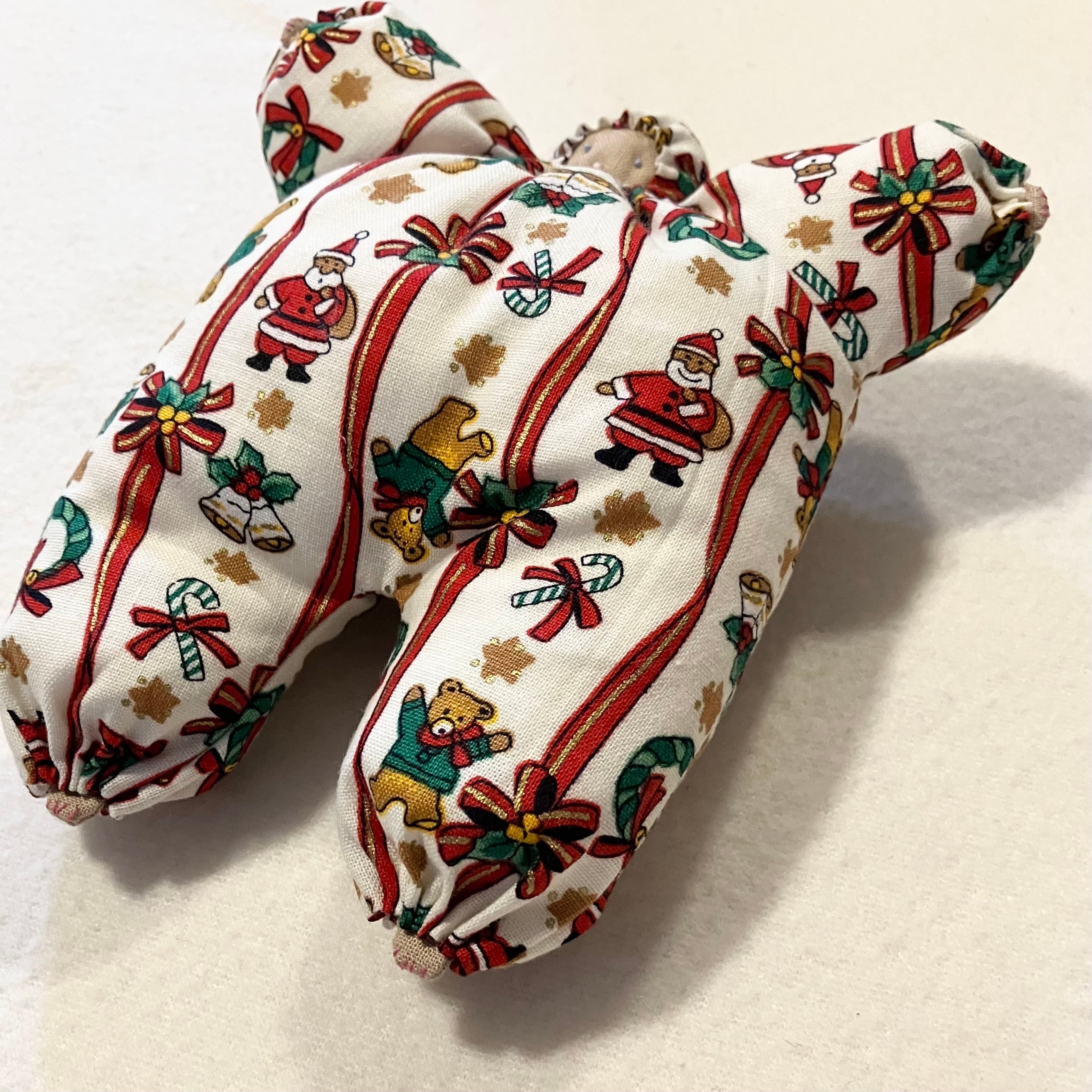 サンタさんと熊さんの、パーティみたいな、プレゼントみたいな、楽しげな生地です。