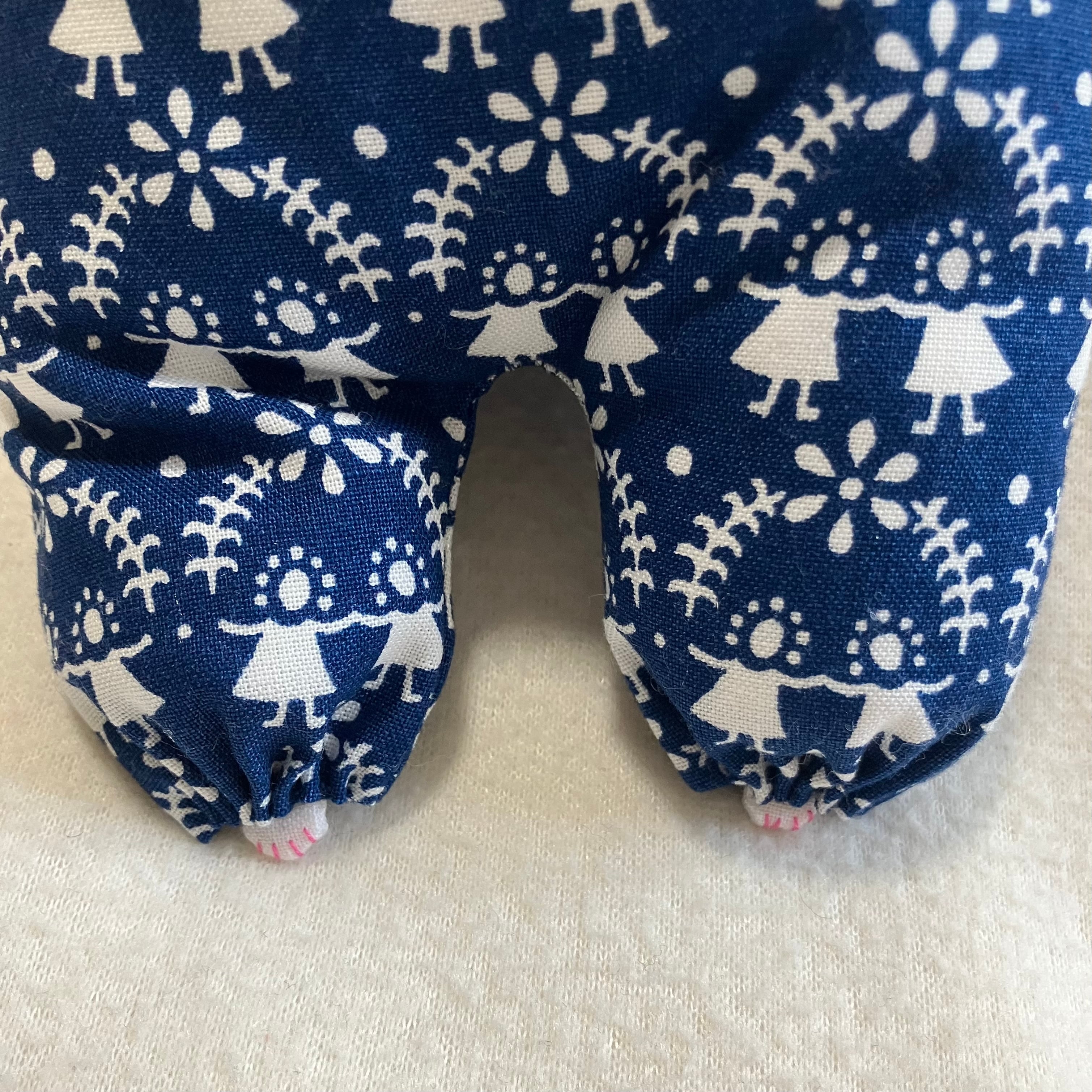 ネイビーに、切り絵のような雰囲気で描かれた仲良し子どもたち模様のコットン生地です。