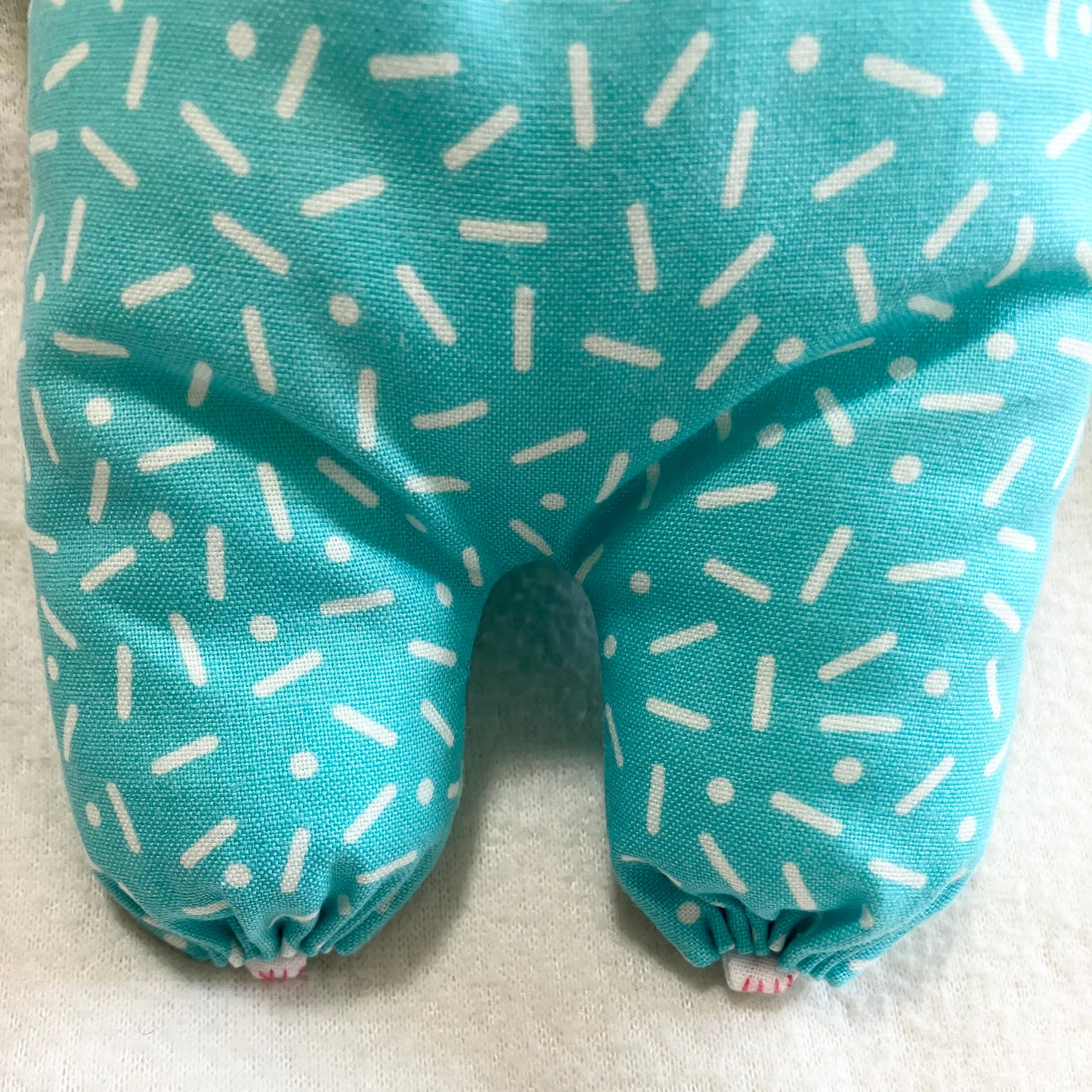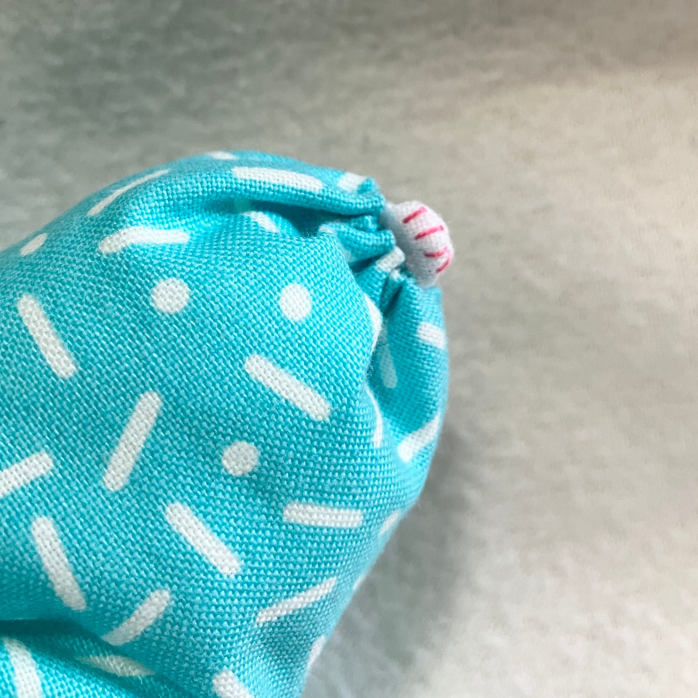 鮮やかなブルーに、ホワイトのカラースプレーチョコレートのような模様のコットン生地です。