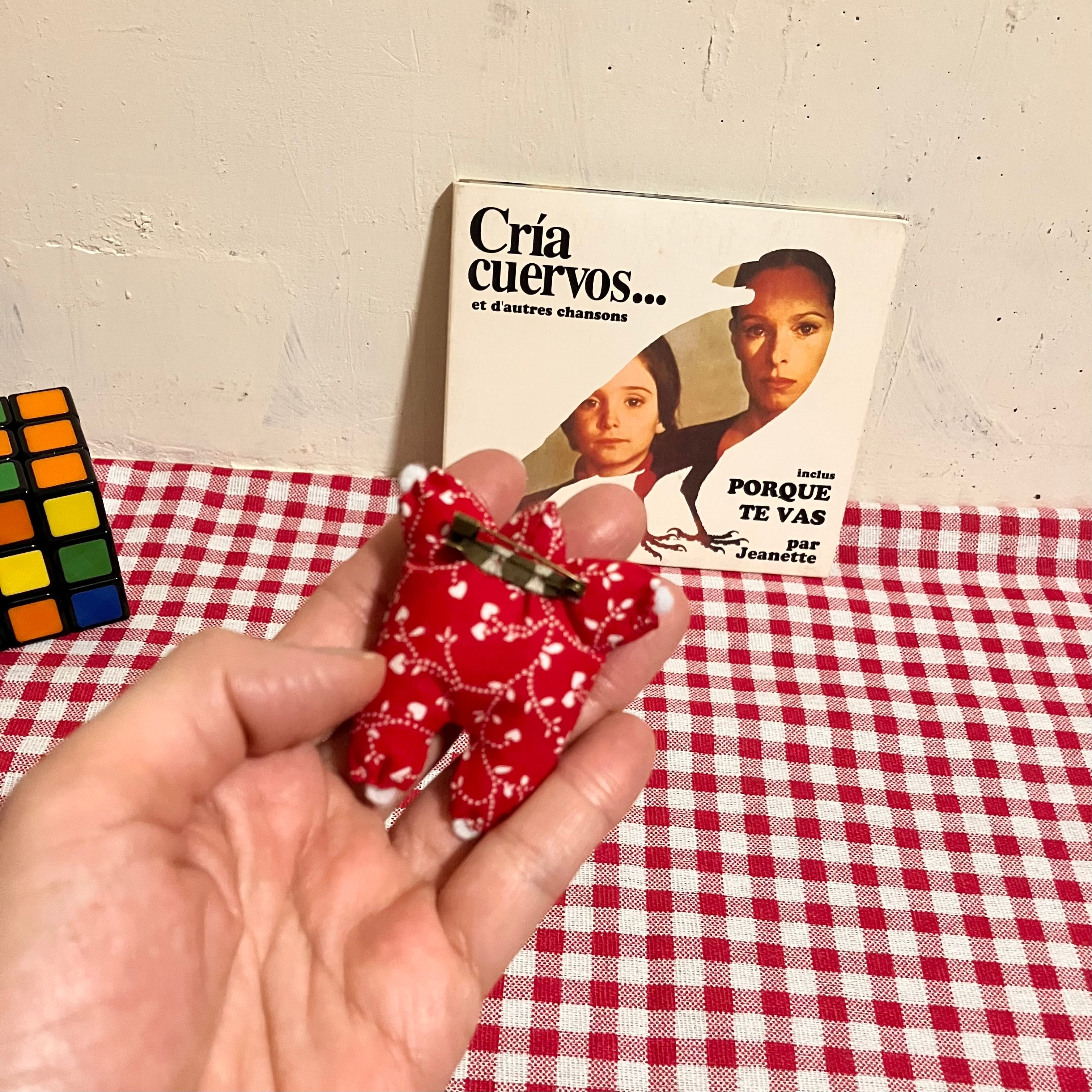 真っ赤に白い植物柄。よく見るとハートの実です◎