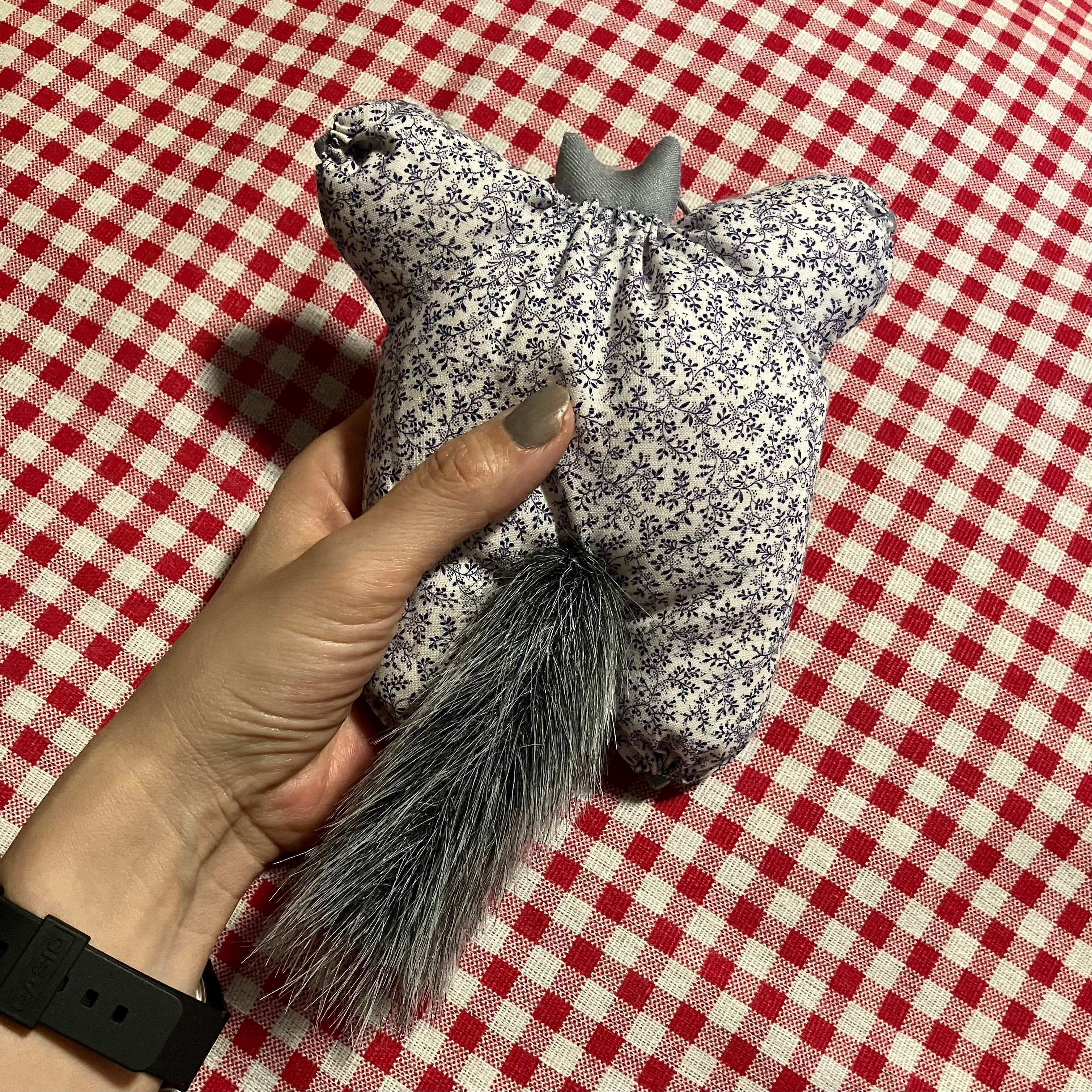尻尾はグレーのフェイクファーです。