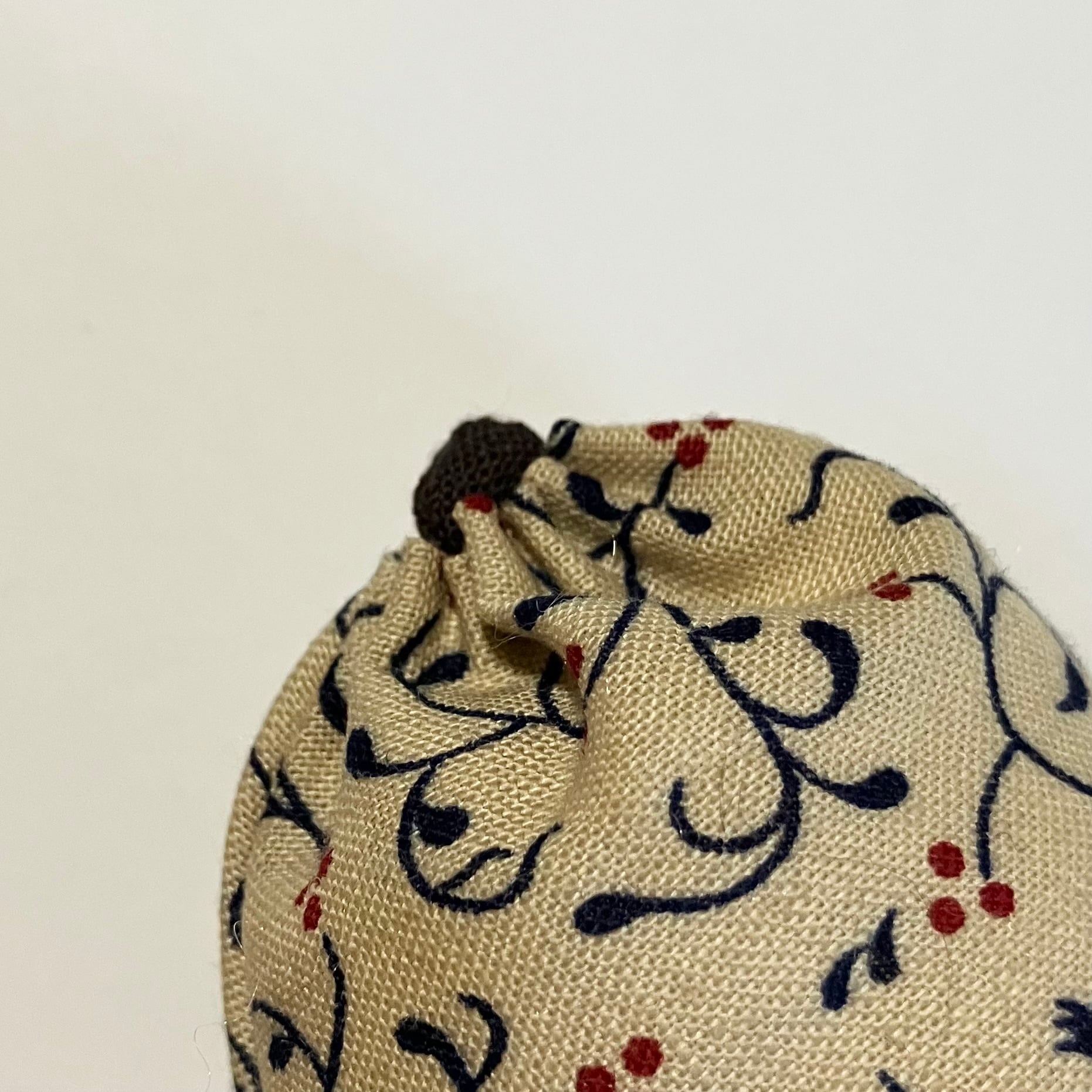 シックなベージュに赤い小さな実がかわいい植物模様のコットン