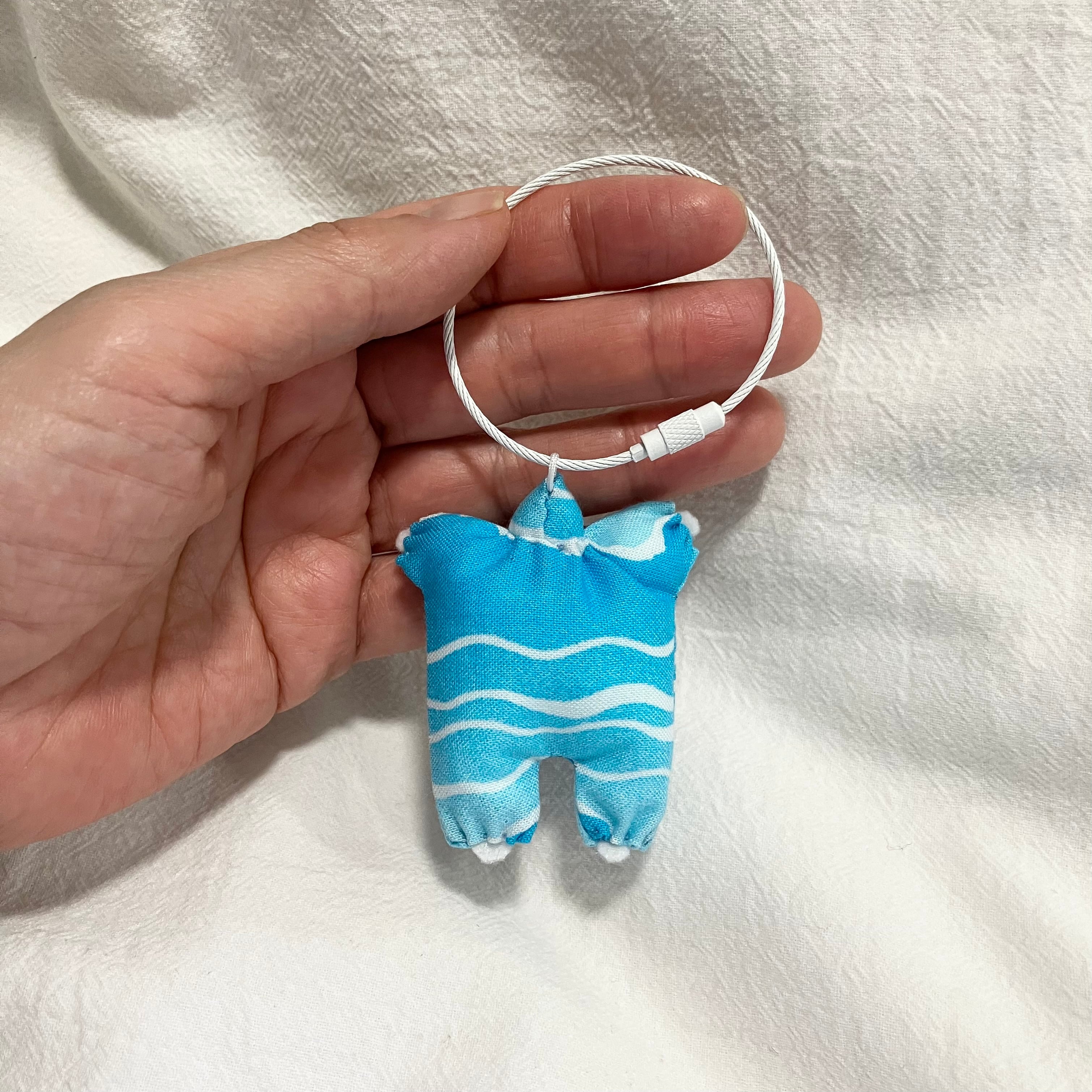お守りサイズのお人形にワイヤーキーチェーンをつけました♪
