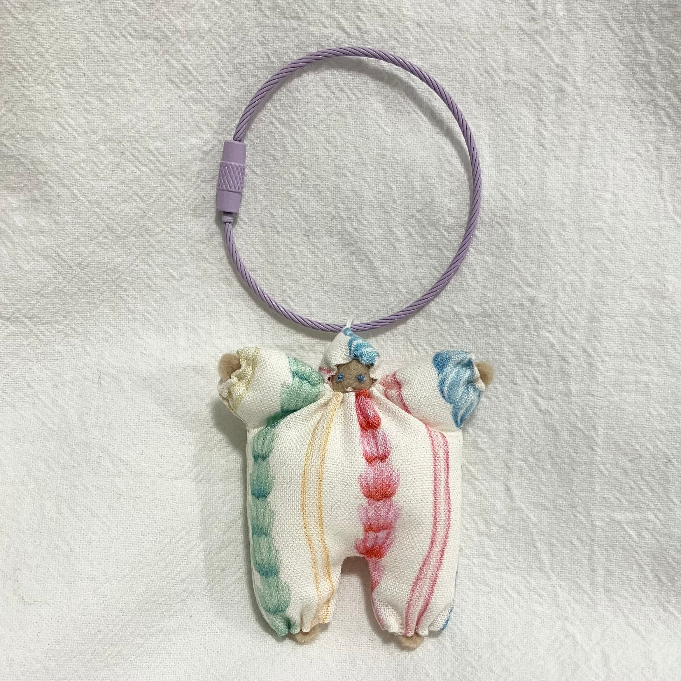 お守りサイズのお人形にワイヤーキーチェーンをつけました♪