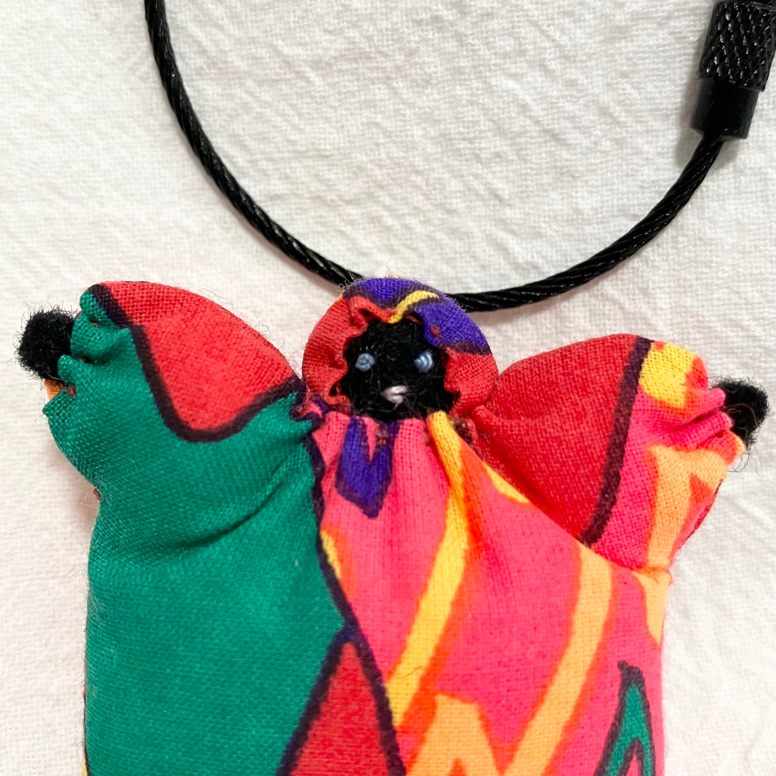 お守りサイズのお人形にワイヤーキーチェーンをつけました♪